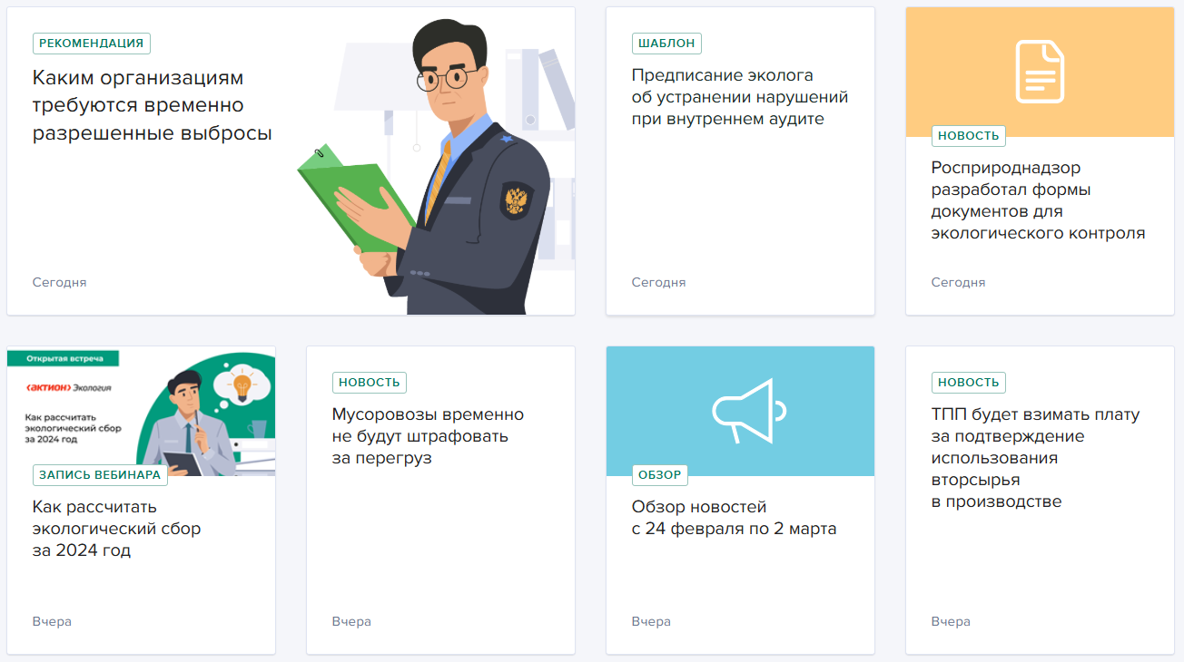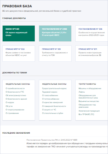 Это новая справочная система, которая содержит рекомендации, экспертную поддержку, полную базу шаблонов, базу нормативно-правовых документов, справочники. Все, что нужно для решения вопросов специалиста по экологии.